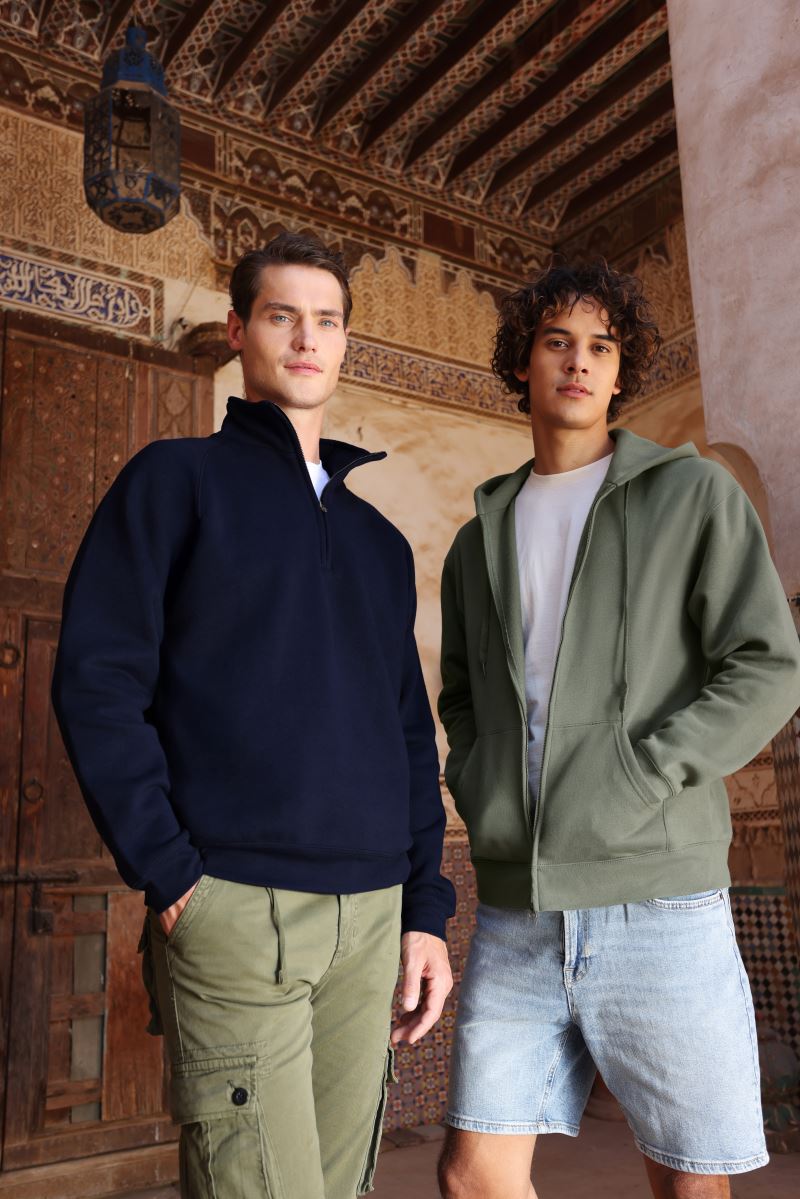 Diese Sweatjacke von Fruit of the Loom bietet eine stabile Qualität und eignet sich für Alltag, Arbeit und Textildruck.