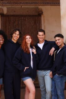 Der Stoff besteht aus 300 g/m² schwerem Material mit gekämmter ringgesponnener Baumwolle und Polyester. Außen sorgt eine Oberfläche aus 100% Baumwolle für ein sauberes Druckergebnis. Innen ist die Jacke angeraut und bietet angenehmen Tragekomfort.