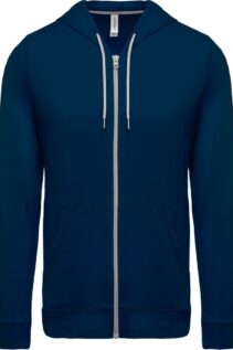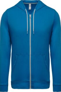 Diese leichte Kapuzen-Sweatjacke von Kariban ist ideal für Alltag, Freizeit oder als bequeme Übergangsjacke. Das hochwertige French-Terry-Material aus gekämmter, enzymgewaschener Baumwolle sorgt für ein angenehm weiches Tragegefühl und hohe Atmungsaktivität.