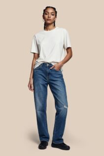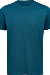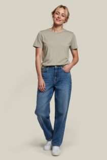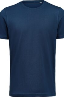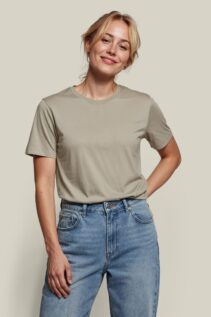 Der klassische Schnitt macht das Shirt für Damen und Herren gleichermaßen geeignet. Der Rundhalsausschnitt mit Rippstrick und das Fischgrät-Nackenband in Ton-in-Ton sorgen für Stabilität und eine saubere Verarbeitung.