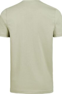 Das 180 g/m² Single Jersey Material aus gekämmter ringgesponnener Baumwolle sorgt für einen weichen Griff und eine angenehme Haptik. Durch die enzymgewaschene Oberfläche wirkt der Stoff besonders glatt und hochwertig.
