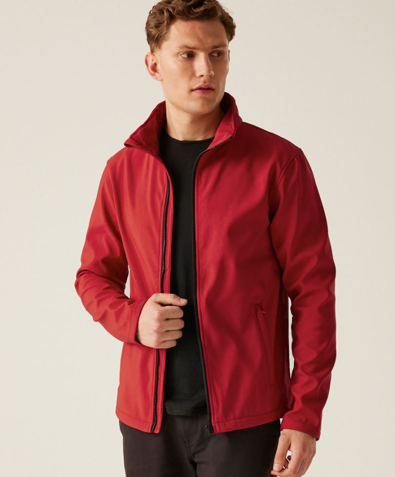 Das Material besteht aus hochwertigem Polyester mit einem hohen Anteil an recyceltem Material und ist PFC-frei, wodurch die Jacke besonders umweltfreundlich ist. Das innenliegende Fleece sorgt für angenehme Wärme, während die spezielle Garnstruktur ohne Elasthan eine sehr gute Bedruckbarkeit ermöglicht.