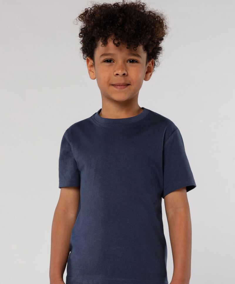 Gefertigt aus 100% halbkammiger, ringgesponnener Baumwolle (melierte Farben mit Viskoseanteil) bietet das Shirt ein angenehmes Hautgefühl und hohen Tragekomfort. Für die kleineren Größen (2–6 Jahre) wird das Shirt mit Seitennähten gefertigt, was eine passgenaue Form unterstützt. Ab Größe 8Y kommt ein Rundstrickgewebe zum Einsatz, das für extra Bewegungsfreiheit sorgt.